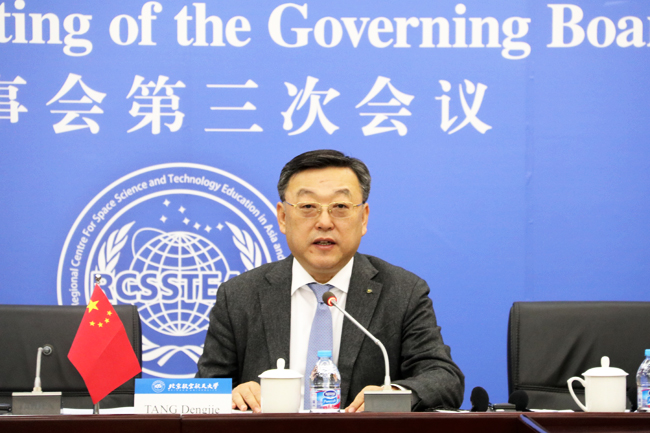 2017年11月29日,联合国附属空间科技教育亚太区域中心(中国)理事会第三次会议在北京航空航天大学召开。会议由区域中心理事会主席、工业和信息化部副部长、国家航天局局长唐登杰主持。联合国外空司空间技术应用项目负责人Luc St-Pierre,阿尔及利亚、阿根廷、玻利维亚、巴西、中国、印度尼西亚、巴基斯坦、秘鲁、委内瑞拉等9个区域中心成员国理事或代表,泰国驻华使馆代表,区域中心咨询委员会主任、北航校长徐惠彬院士,区域中心主任、北航副校长陶智,工业和信息化部、国防科工局相关司局的人员出席了会议。
