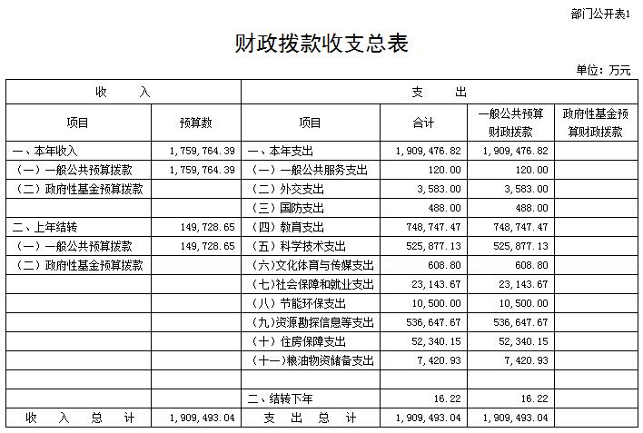 工业和信息化部2016年财政拨款收支总预算1,909,493.04万元。收入包括:一般公共预算财政拨款1,759,764.39万元、上年结转149,728.65万元;支出包括:一般公共服务支出120万元、外交支出3,583.00万元、国防支出488.00万元、教育支出748,747.47万元、科学技术支出525,877.13万元、文化体育与传媒支出608.80万元、社会保障和就业支出23,143.67万元、节能环保支出10,500.00万元、资源勘探信息等支出536,647.67万元、住房保障支出52,340.15 万元、粮油物资储备7,420.93万元、结转下年16.22 万元。