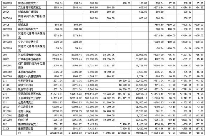 (七)社会保障和就业2016年年初预算23,096.05万元,比2015年执行数减少4,227.39万元,减少15.47%。主要原因是2015年追加了离退休人员调资经费。