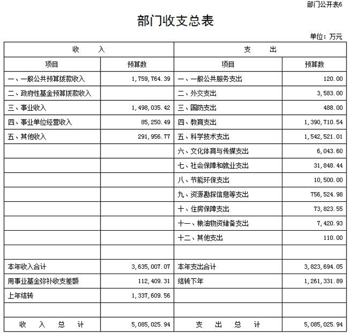 按照综合预算的原则,工业和信息化部所有收入和支出均纳入部门预算管理。收入包括:上年结转、一般公共预算拨款收入、事业收入、事业单位经营收入、其他收入、用事业基金弥补收支差额;支出包括:一般公共服务支出、外交支出、国防支出、教育支出、科学技术支出、文化体育与传媒支出、社会保障和就业支出、节能环保支出、资源勘探信息等支出、住房保障支出、粮油物资储备支出、其他支出、结转下年。工业和信息化部2016年收支总预算5,085,025.94万元。