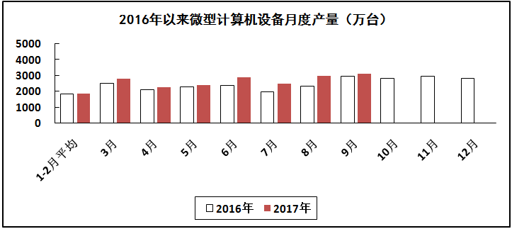 计算机行业生产、出口有所放缓。前三季度,生产微型计算机设备22603万台,同比增长9.5%,其中笔记本电脑12751万台,同比增长9.8%;平板电脑6374万台,同比增长8.3%。实现出口交货值同比增长13.6%,其中9月份增长13.3%。