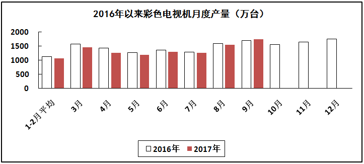 家用视听行业出口保持较快增长,但生产持续低迷。前三季度,生产彩色电视机12008万台,同比下降3.7%,其中液晶电视机11251万台,同比下降6.5%;智能电视7458万台,同比增长0.9%,占彩电产量比重为62.1%。出口交货值同比增长13.9%,其中9月份增长20.4%。