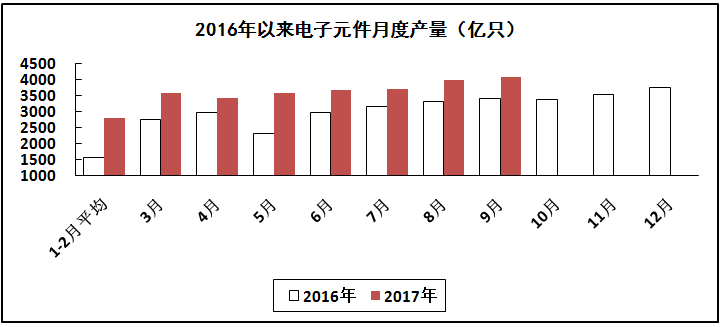 电子元件行业生产保持平稳增长。前三季度,生产电子元件31549亿只,同比增长17.6%。出口交货值同比增长15.4%,其中9月份增长24.0%。
